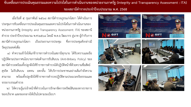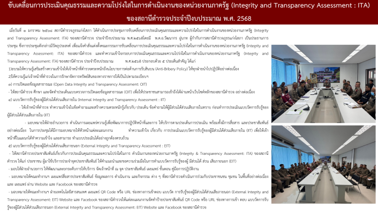 กิจกรรมชี้แจงการประเมินคุณธรรมและความโปร่งใสในการดำเนินงานของหน่วยงานภาครัฐ (ITA) ของสถานีตำรวจ ปี 2568